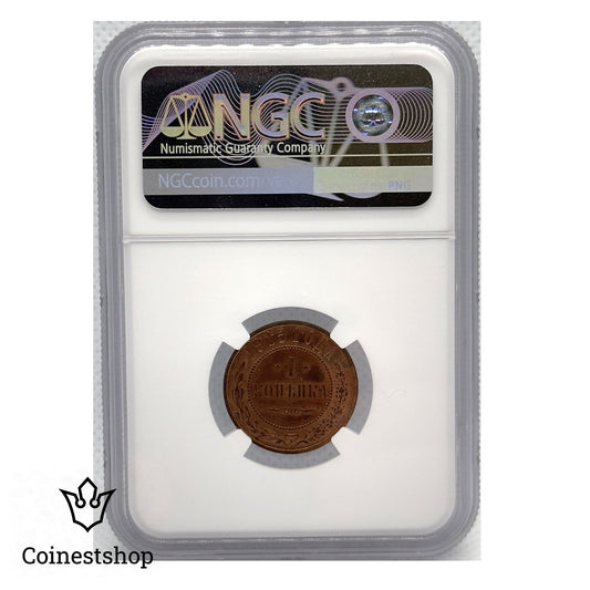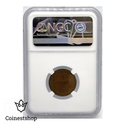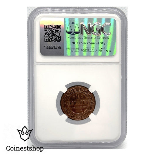 1903 Russia NGC 1 Kopeck AU DETAILS Copper Coin Tsar Nicholas II Nice Red Shine!
