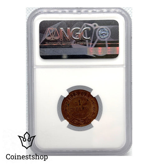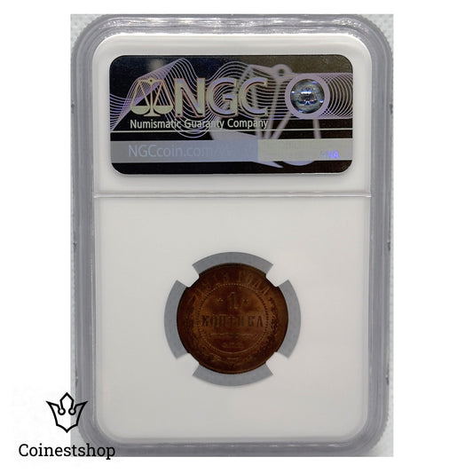 1915 Russia NGC 1 Kopeck MS 62 RB Copper Coin Tsar Nicholas II Nice Red Luster