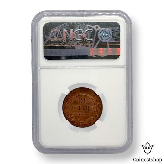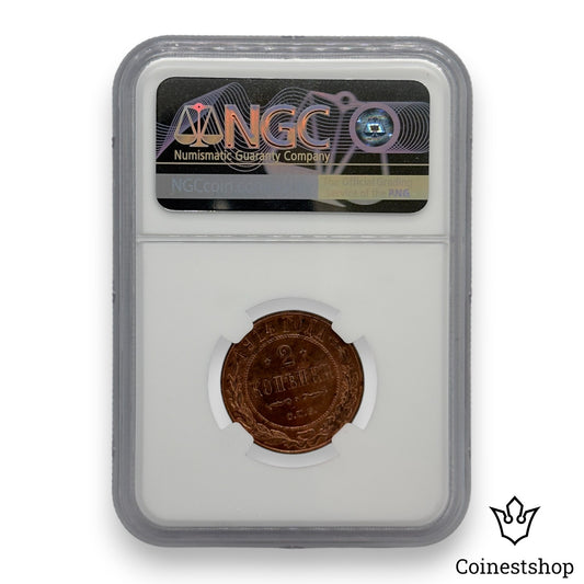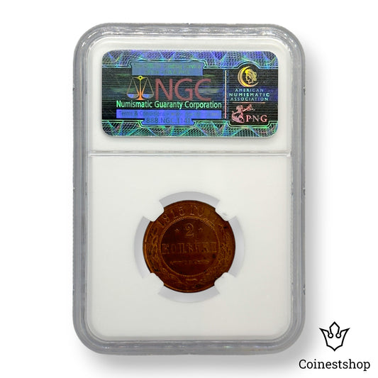 1915 Russia NGC 2 Kopecks MS 63 RB Copper Coin Tsar Nicholas II No Mint mark