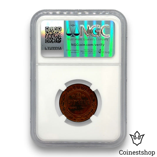 1915 Russia NGC 2 Kopecks UNC DETAILS Copper Coin Tsar Nicholas II No Mint mark